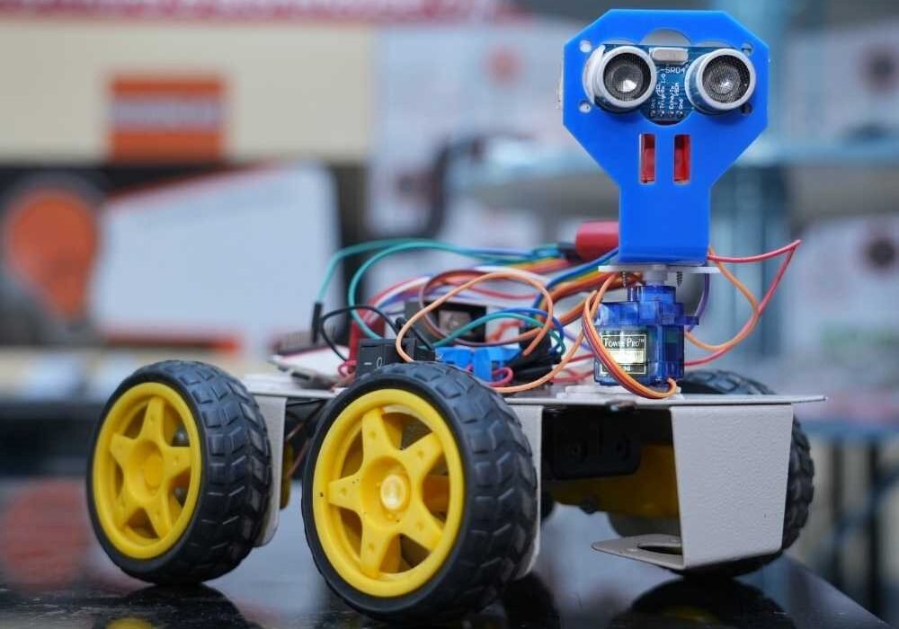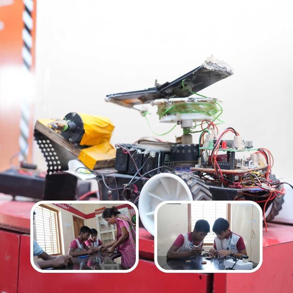 An innovative space where students learn to build and program robots using sensors, circuits, and basic coding.
