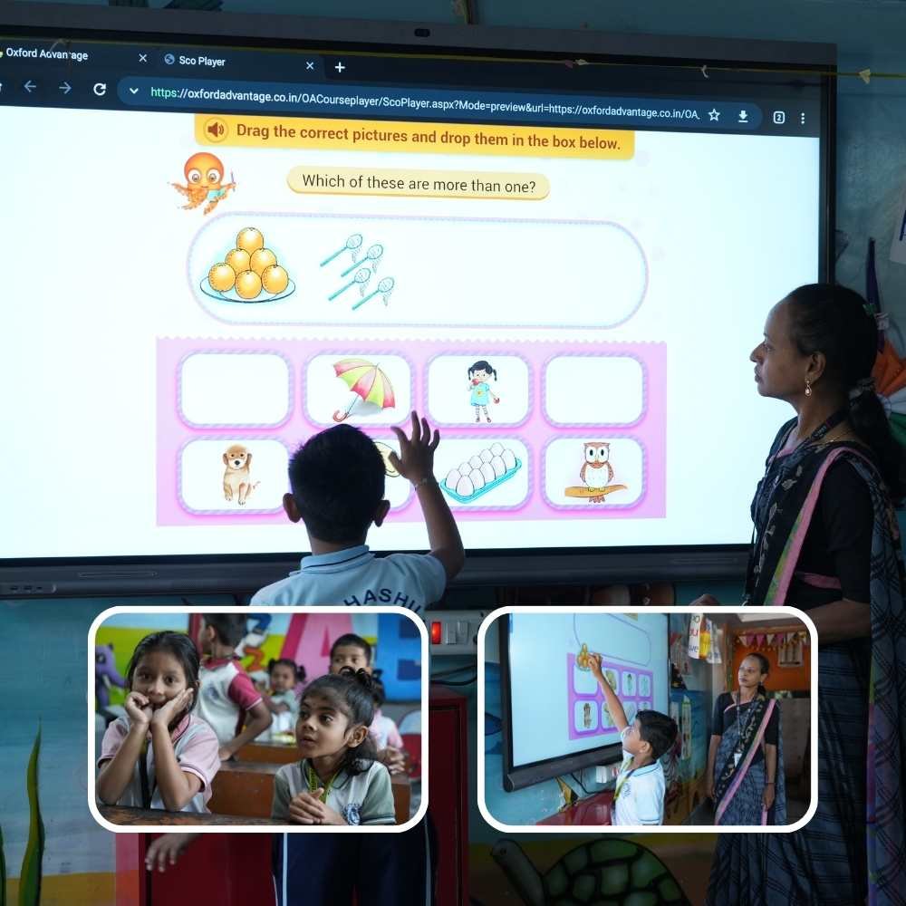 Each classroom is equipped with digital boards, audio-visual tools, and subject-specific animated content to enhance daily learning.